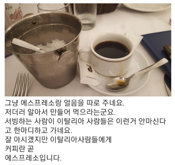 특히 유럽의 전통 카페에서는 아메리카노를 주문하면 이상한 눈초리로 다시 한 번 더 주문을 확인하는 경우도 있는데요. 유럽인에게 커피는 무조건 뜨거운 에스프레소라고 보면 됩니다. 그래서 아무리 더운 여름이라 해도 아이스 아메리카노를 발견하기란 쉽지 않죠.