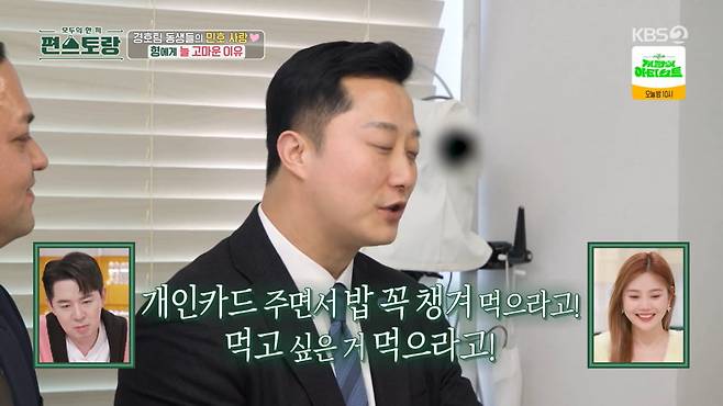 “뭐 먹었어요? 이 카드로 먹고 싶은 거 드세요.”