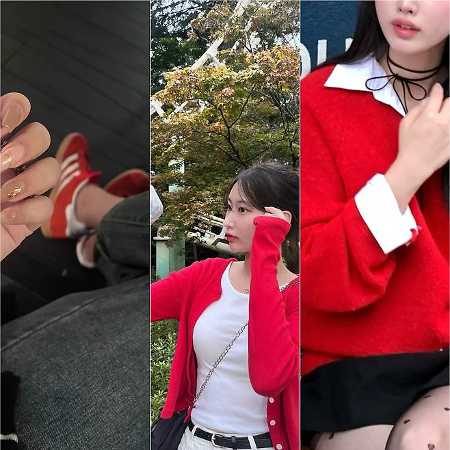 레드가 부담스럽다면 이런 식으로 코디해보는 것도 좋을 것 같아요!
