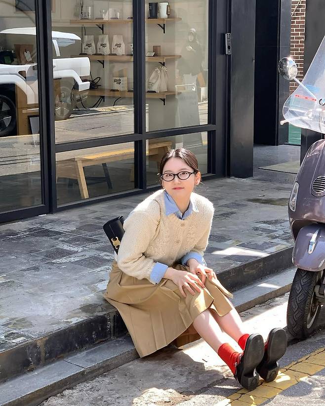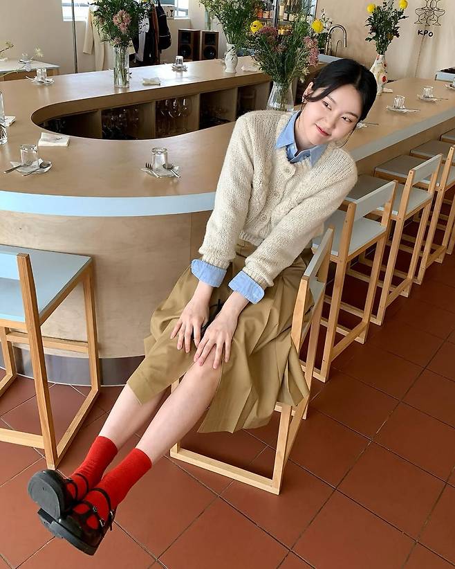 사진 속 심소영은 베이지 톤의 크롭 니트 가디건과 연청 셔츠를 레이어드해 포근하면서도 깔끔한 무드를 연출했다. 여기에 하이웨이스트의 베이지 플리츠 스커트를 매치해 실루엣을 강조하고, 아날로그 감성의 장소와도 자연스럽게 어우러졌다. 그녀가 앉아 있는 모습만으로도 공간 전체가 따뜻하게 느껴질 정도다.