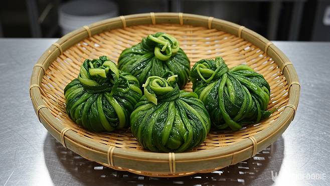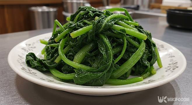 끓는 물에 소금 1큰술을 넣고, 두꺼운 줄기부터 넣는다. 잎 부분은 나중에 넣어야 익힘 정도가 고르게 맞는다. 짧게 데친 뒤 체망에 담아 세 번 눌러 물기를 빼준다. 찬물에 담가 헹구면 색이 선명해지고 열도 빠진다. 마지막으로 손으로 살짝 짜내면 무칠 준비는 끝난다.