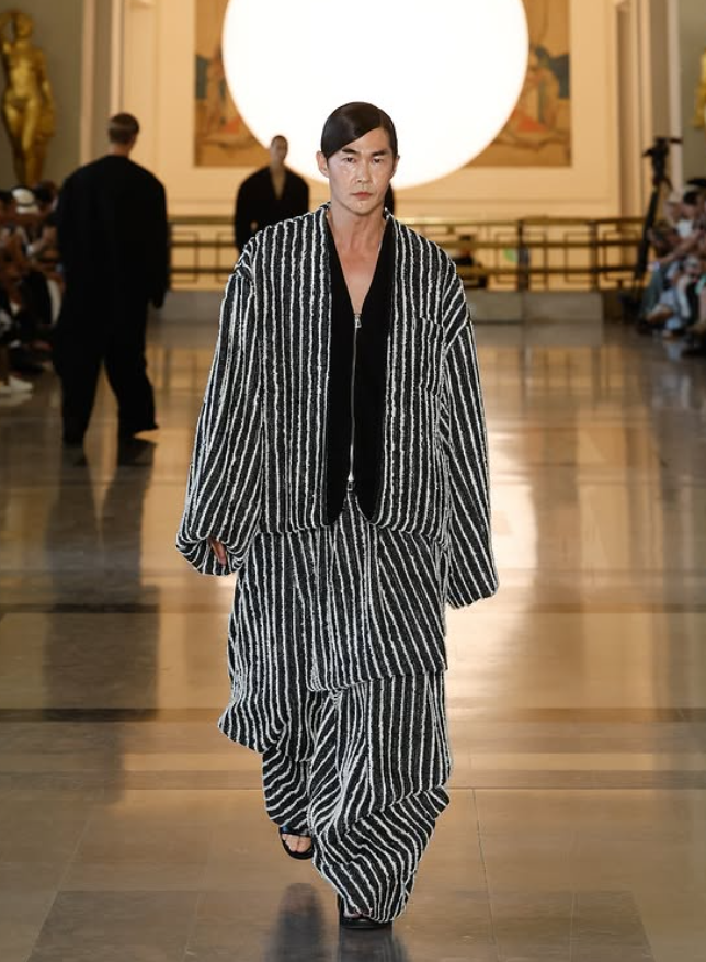 배정남은 지난 25일 프랑스 파리 샤이요 국립극장에서 열린 2026 S/S 파리 패션위크에서 한국 대표 디자이너 브랜드 송지오의 옴므 컬렉션 '폴립티크' 쇼에 모델로 참석했어요.