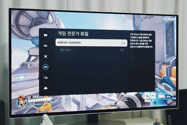 또한 HDR을 지원하는 모니터 답게 세부사항을 설정해줄수도 있습니다. 게이머에게 이렇게 많은 선택지를 고려하게 했다는 것 자체가 삼성이 오디세이 브랜드를 얼마나 디테일하게 세공하고 있는지 알 수 있었는데요, HDR10+ GAMING은 기본과 고급으로 나누어 영상 특수효과를 더욱 실감나고 화려하게 표현할 수 있게 합니다.