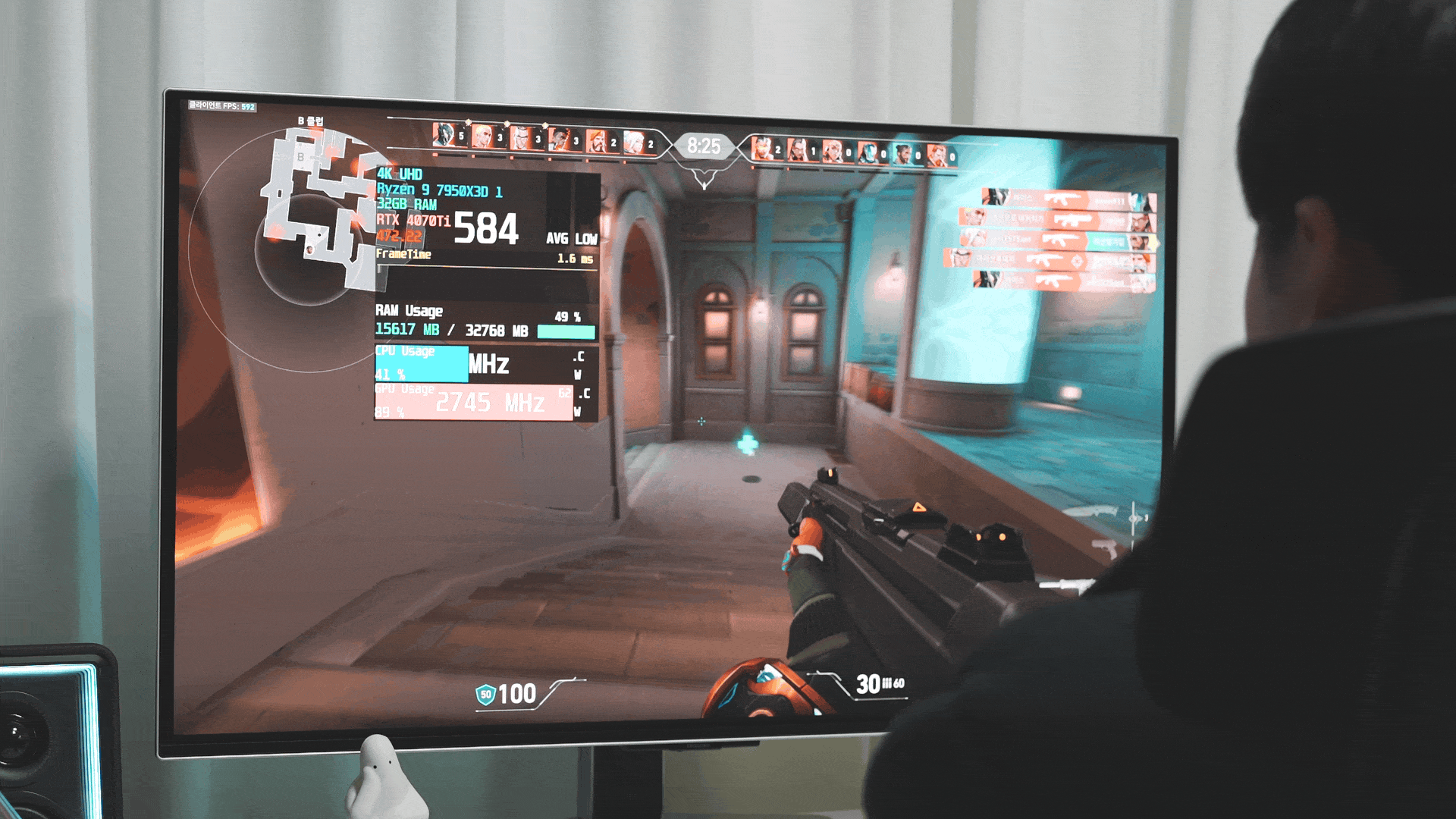 가벼운 게임에 속하는 발로란트나 오버워치 같은 경우에는 얘기가 많이 달라졌습니다. 4K 환경에서도 240Hz를 충분히 뽑아내어 더 매끄러운 플레이가 가능했던 것인데요, 경쟁형 FPS 게임을 하시는 분들에게 시스템 사양이 그리 좋지 않아도 최고 사양에 준하는 플레이 환경을 만들어낼 수 있을 것 같습니다.