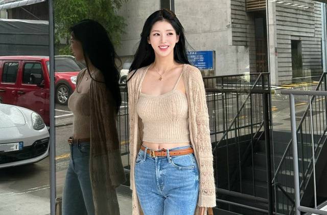 상의는 몸에 슬림하게 핏되는 니트 텍스처이고, 아우터는 루즈하게 떨어지는 오픈형 카디건으로 체형 보완과 분위기 연출을 동시에 챙긴 구성이었다.