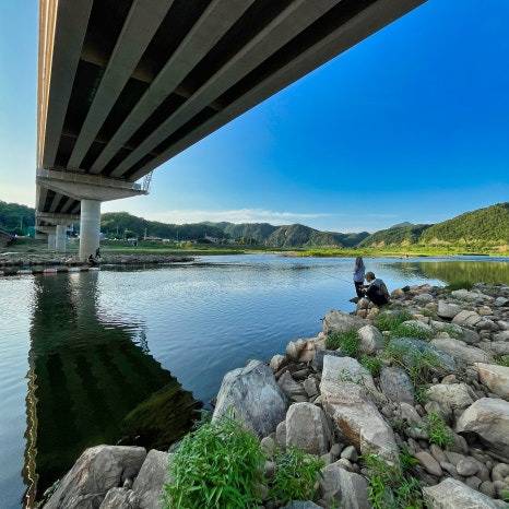 무더위를 피해 구강교 아래 그늘진