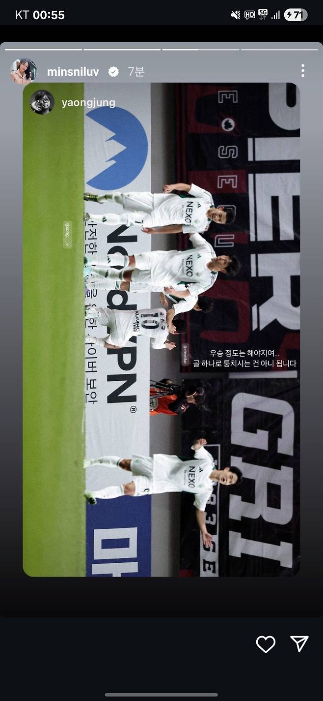 곽민선 역시 송민규의 세레머니를 본 뒤 인스타에 답장을 남기기도 했다.