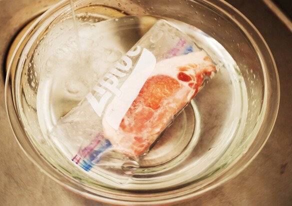 뜨거운 물에 담궈 놓으면 더 빨리 해동되지만 잡내가 날 수 있다.