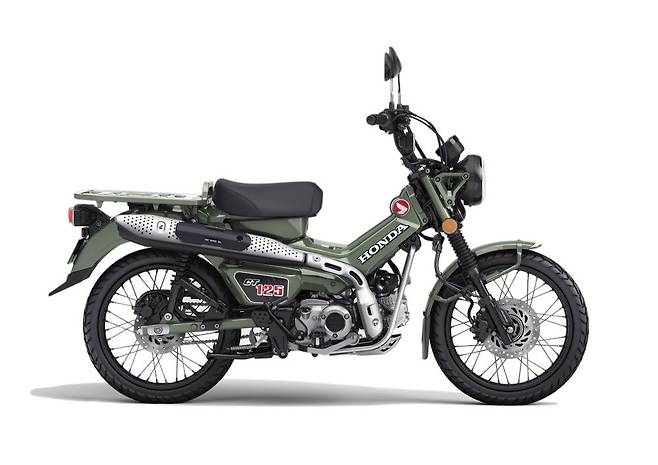 2023년 모터사이클 시장에서 가장 주목받는 모터사이클 중 하나다. 아직도 줄을 서서 구매해야 하는 바이크다. 출시 전부터 인기 있었던 이유는 과거 비슷한 디자인을 한 헌터 커브와 크로스 커브가 이미 그 가치를 증명했기 때문이다. CT125는 오프로드 라이딩과 여행을 염두에 두고 개발되었다. 170mm 최저지상고에 800mm 시트고, 125mm 프런트 서스펜션 스트로크, 세미 블록 패턴 타이어, 언더가드, 하이 마운트 흡기 덕트, 오프로드 풋페그, 업스타일 머플러가 적용되어 있어 모토캠핑을 비롯한 자연 속에서 모터사이클 라이딩을 즐기는 라이더에게 안성맞춤이다.