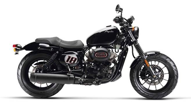 현재 판매되고 있는 125cc 클래스 모터사이클 중 유일하게 크루저 장르를 담당하는 모델이다. 아퀼라 125 S는 크루저 중에서도 전체적으로 중심이 낮고 앞뒤 타이어가 두툼하며 휠베이스 길이가 짧은 바버 스타일을 하고 있다. 수랭식 125cc V트윈 엔진을 채택하였으며 최대 출력은 10,000rpm에서 13.9ps로 동급 대비 높은 편에 속한다. 일반적으로 크루저 장르의 바이크가 저rpm에서의 두꺼운 토크감으로 출력을 뿜어내는 것에 비해 비교적 높은 rpm을 사용하는 것이 특징이다. 출력을 높이기 위한 선택으로 생각된다. 시트고가 710mm로 매우 낮은 편이지만 최저 지상고는 150mm로 꽤 높아 모토캠핑, 여행 중 만나는 웬만한 흙길에서의 주행도 문제없다.