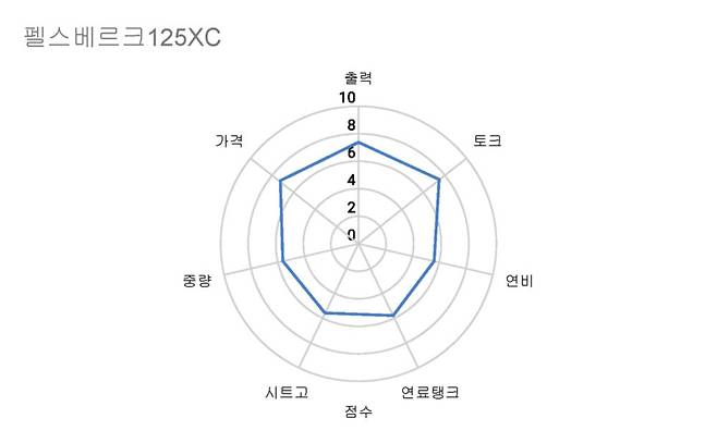 ‘빈티지 모토크로스(VMX) 스타일 스크램블러’가 펠스베르크 125 XC를 가장 잘 나타낼 수 있는 수식어라고 생각한다. 클래식 스타일의 크롬 연료탱크와 거대한 업펜더는 VMX를 떠오르게 하고, 앞 18인치, 뒤 17인치 타이어는 온로드와 오프로드를 모두 고려한 스크램블러의 모습을 한다. 820mm의 비교적 높은 시트고에 블록 패턴 타이어, 언더가드까지 오프로드를 즐기기에 제격인 세팅이다. 대부분 125cc 모터사이클은 입문자를 고려해야 하기 때문에 발 착지성을 위해 낮은 시트고를 갖고 있다. 그래서 키가 큰 라이더 혹은 입문자의 경우 오히려 불편할 수 있다. 그런 사람들에게도 좋은 선택지가 된다.