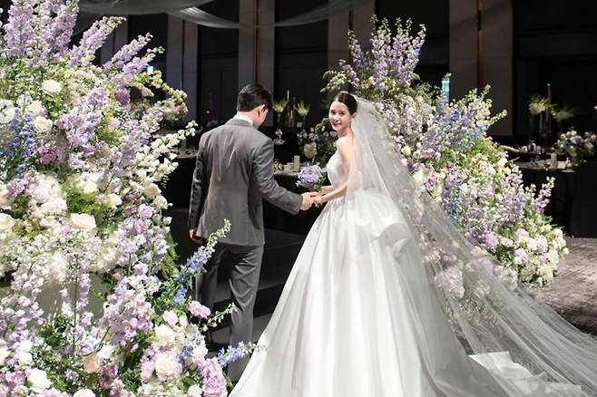 특히 드레스는 웨딩 전문 브랜드 ‘브라이덜온유(Bridal On U)’의 제품으로, 그 우아한 디자인이 조용히 강한 인상을 남겼다.