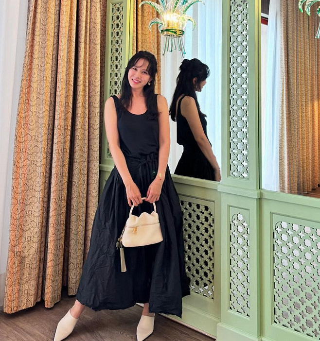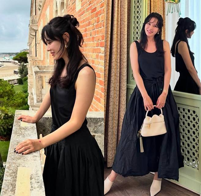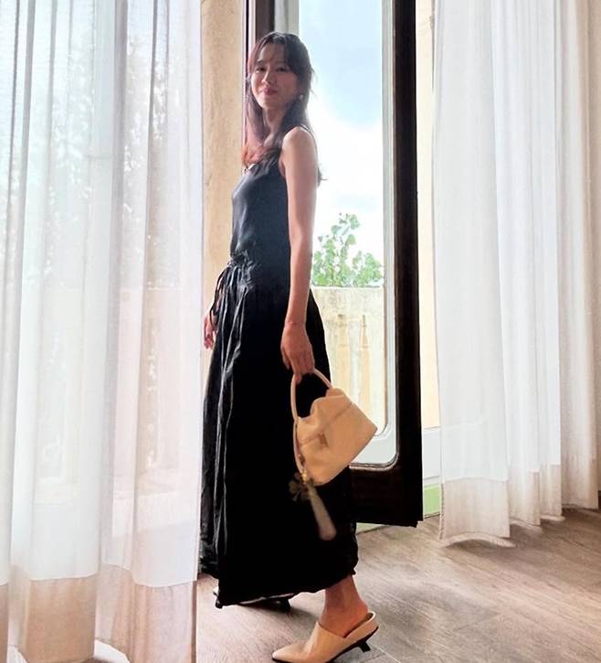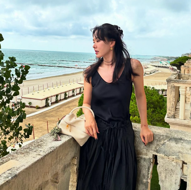 배우 손예진(43)이 우아한 블랙 민소매 원피스룩으로 베니스 근황을 전했다.