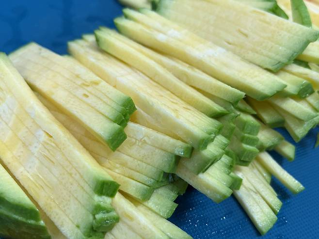 호박은 잘게 채를 썰어서 준비하세요. 호박과 함께 당근, 양파 등 다른 야채를 넣어도 좋습니다. 색감을 위해 저는 당근을 넣었어요.