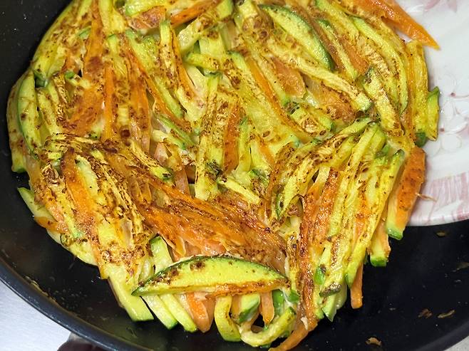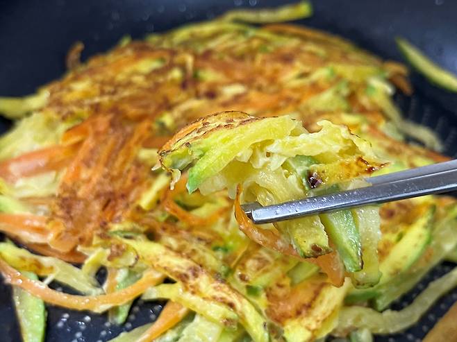 호박은 잘라서 항상 전으로만 부쳐 드셨나요? 이제는 잘게 채를 썰어서 부침개를 만들어 보세요! 훨씬 손이 덜 가면서도 맛있습니다.