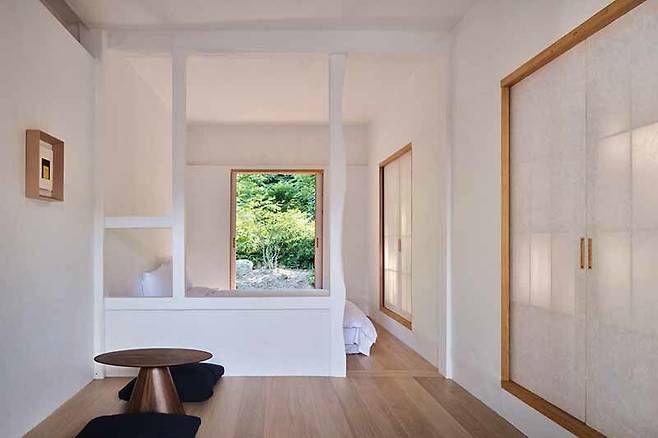 개별 마당과 입구가 있는 1호실을 비롯해 소담한 마당과 계곡을 향한 2~6호실까지 총 6개의 객실은 모두 한지로 벽을 마감하고 안쪽 문살을 삼베로 발라 단정하면서도 우아한 분위기를 자아내요. 두툼한 목화솜 보료와 가볍고 포근한 명주솜 이불, 편안한 숙면을 돕는 메밀 베개까지 도시에서 벗어나 진정한 쉼과 살아 있는 명상을 체험할 수 있어요.