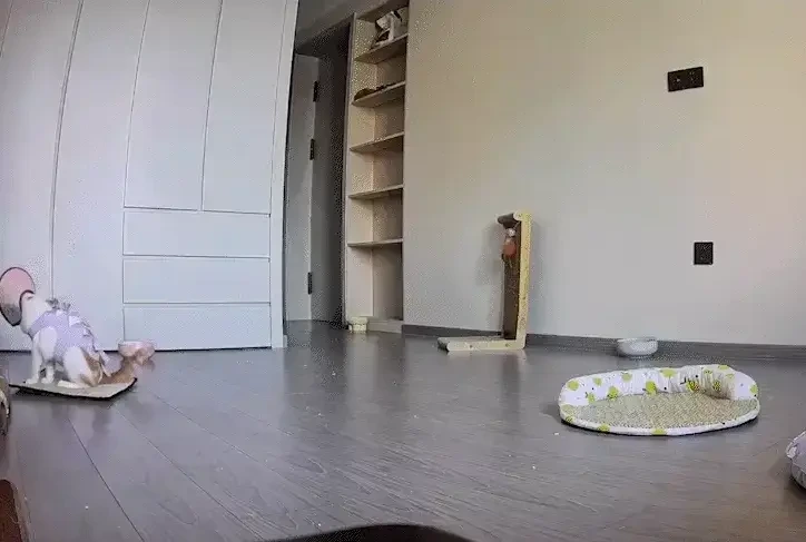 그런데 이 고양이는 정말 만화 영화 속 주인공 같았습니다! 먼저 놀라운 '뒤공중돌기'를 선보이더니, 귀찮은 엘리자베스 컬러(넥카라)를 멀리 던져버렸습니다.