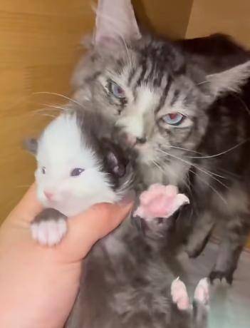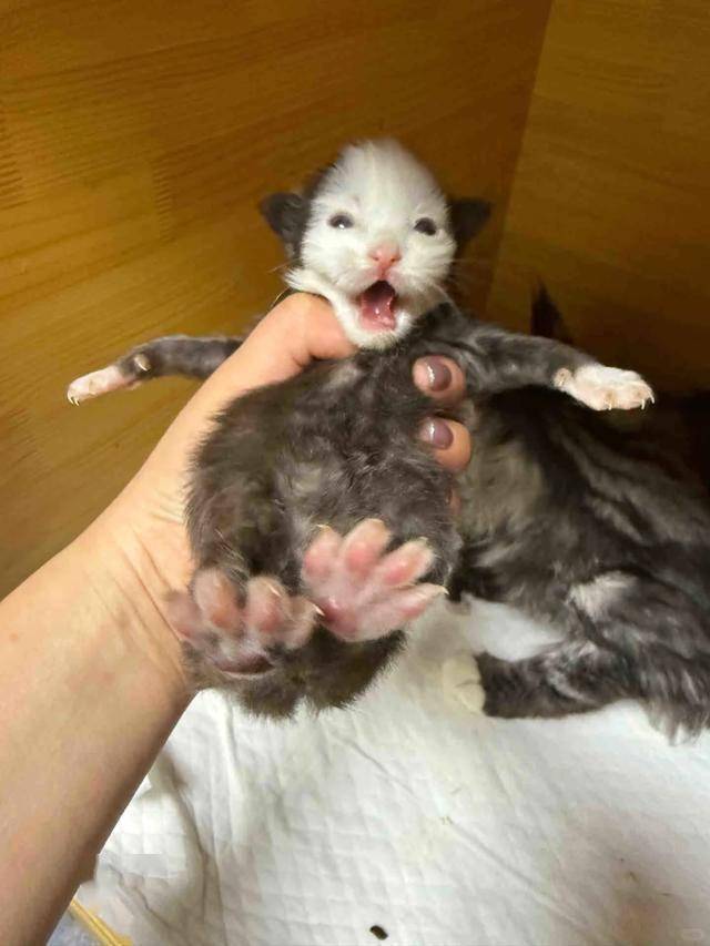 한 네티즌의 메인쿤 고양이 엄마가 아기를 낳았습니다. 그중 한 마리 새끼 고양이는 정말 눈에 띕니다.