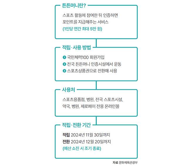 스포츠 활동을 인증하면 현금처럼 쓸 수 있는 포인트를 주는 ‘튼튼머니’를 아시나요? 운동할 때마다 포인트가 쌓여서 연간 최대 5만 원의 혜택을 가져갈 수 있습니다. 11세 이상 국민이라면 누구나 참여 가능한 '튼튼머니'. 자세한 내용은 정책주간지 'K-공감'에서 확인하세요.