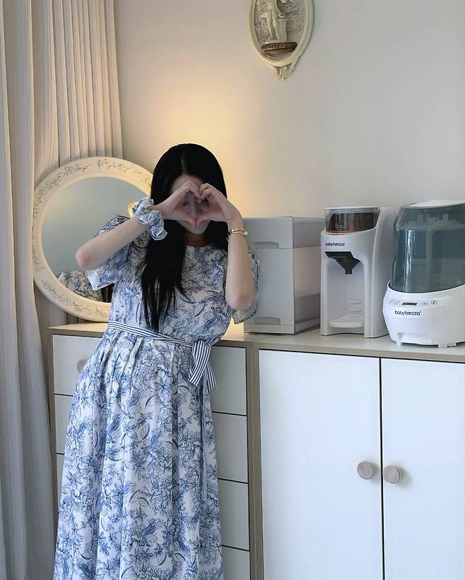 블루 톤의 플로럴 패턴 원피스를 선택한 최연청은 로맨틱한 분위기를 물씬 풍기고 있다. 퍼프 슬리브 디테일과 A라인 실루엣이 페미닌한 매력을 극대화하며, 하트 포즈로 사랑스러운 모습을 연출하고 있다. 화이트와 블루의 조화가 청순한 이미지를 완성한다.
