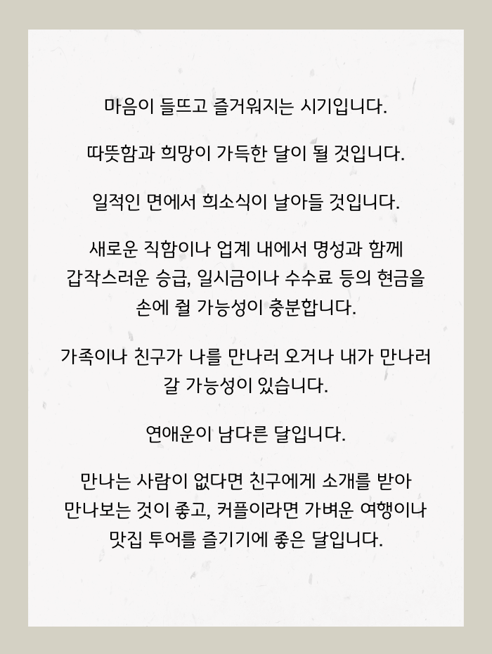 포춘에이드가 전하는 띠별 운세와 함께여러분의 6월이 더 건강하고, 더 따뜻하고, 더 행복해지기를 진심으로 응원할게요! 🌿🌟