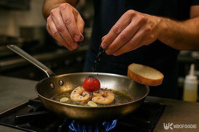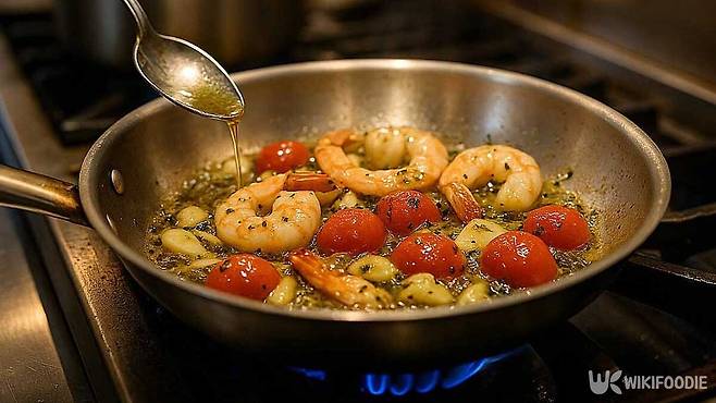 이 요리에서 마늘은 중요한 역할을 한다. 편으로 썬 마늘은 기름에 먼저 볶으면 향이 오일 전체에 퍼진다. 날 것으로 쓸 때보다 매운맛이 줄고, 오히려 단맛과 고소함이 올라온다. 칵테일새우는 짧은 시간 안에 익기 때문에 바질오일을 흡수하면서도 질감이 무너지지 않는다. 익었을 때 겉은 단단하게, 속은 부드럽게 유지된다. 방울토마토는 단면을 내어 기름에 닿게 하면 겉은 살짝 탄 듯하게 익고 속은 수분이 응축된다. 단맛과 산미가 진하게 올라와 오일 요리 특유의 느끼함을 잡아준다. 페퍼론치노는 자르지 않고 통으로 넣으면 기름에 은은한 매운맛을 남긴다. 바질은 얼려 쓰는 방식으로도 향이 살아 있으며, 다른 재료와 함께 익었을 때 전체 풍미를 마무리하는 역할을 한다.