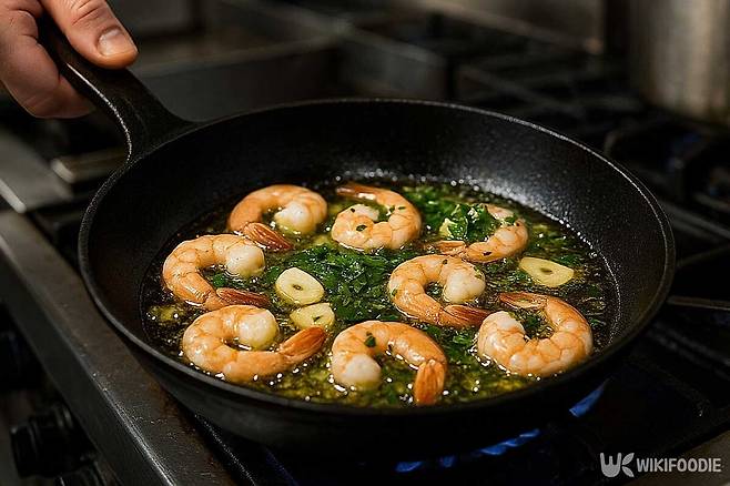 7. 새우 색이 주황빛으로 변하면 불을 끈다