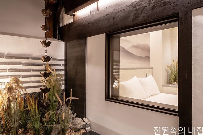 전통적인 것과 현대적인 것의 결합입니다. 손님들께서 기와로 이뤄진 유려한 선, 목조건축이 주는 한옥의 아름다움을 만끽할 수 있도록 말이죠. 이에 더해 자쿠지에서의 힐링을 통해 재충전하기를 바라는 마음으로 인테리어 콘셉트를 잡았습니다.
