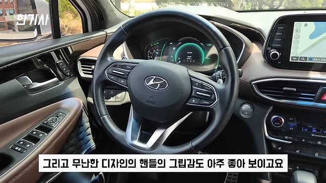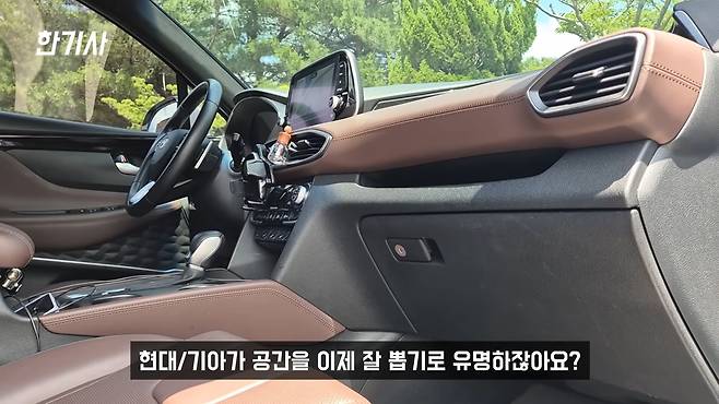 실내 디자인도 마음에 들어요. 나파 가죽 시트와 보기 쉬운 내비게이션 위치가 좋습니다. 무난한 디자인의 핸들 그립감도 좋고, 센터패시아 디자인이 싼타페 DM의 가로 형태에서 세로 형태로 바뀌어 인상적이에요. 대시보드 밑 수납공간과 크렐 프리미엄 사운드 시스템도 고급감을 더합니다.