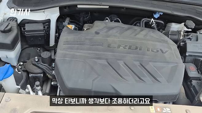 이전에 가솔린 차량을 타다가 디젤 차량으로 바꿀 때 시끄러울까 걱정했지만, 막상 타보니 생각보다 조용해서 만족하고 있습니다. 출력도 XM3에 비해 아쉽지 않습니다. 싼타페 TM 2.0 디젤 엔진은 186마력에 41 토크인데, 이전 XM3는 152마력이었거든요.