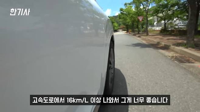 연비도 아주 만족스럽습니다. 일반 공도에서 11km/L, 고속도로에서는 16km/L 이상이 나와요. 저는 주로 스마트 모드와 에코 모드를 번갈아 사용하는데, 일반 공도 20퍼센트, 고속도로 80퍼센트 비율로 운행 시 복합 평균 연비는 약 15km/L 이상입니다. 가득 주유하면 운전 습관에 따라 950km에서 800km까지 주행 가능해요.