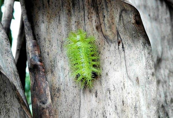 ‘플라넬 나방’의 애벌레는 ‘고양이 애벌레’라고도 불린다. 이 애벌레는 미국 남동부와 멕시코 지역에 주로 서식하면서 느릅나무나 떡갈나무 잎을 먹고 자란다. 크기는 3cm 내외인데, 마치 가발처럼 보이는 털에는 독침을 숨기고 있다. 이 침이 피부에 박히게 되면 심한 통증을 느끼게 되며, 그 부위는 퉁퉁 붓게 된다. 간헐적으로 구토를 하게 될 수 있으며, 쇼크 증상을 일으키는 경우도 보고된다.