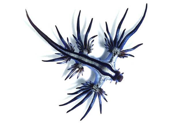 ‘푸른갯민숭달팽이’는 ‘블루 드래곤’이라는 이름으로 잘 알려진 연체동물의 일종이다, 다채로운 색과 아기자기한 모습으로 유명한 갯민숭달팽이류 중에서도 가장 아름다운 연체동물로 유명하다. 푸른갯민숭달팽이는 강한 독성을 지닌 고깔해파리를 잡아먹어 그 독을 체내에 농축시키는 식으로 스스로를 보호한다. 그렇기에 상당히 강력한 독을 보유한 생물이라 할 수 있다. 먹이를 통해 독을 가지기에, 독성 먹이를 먹지 않는다면 독이 없어 안전하다.