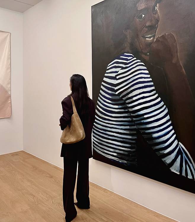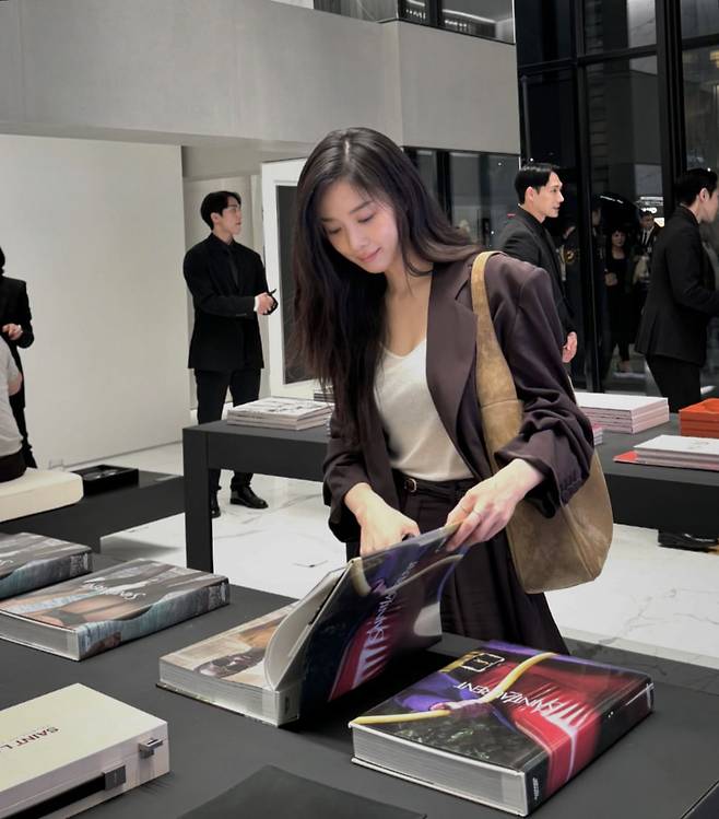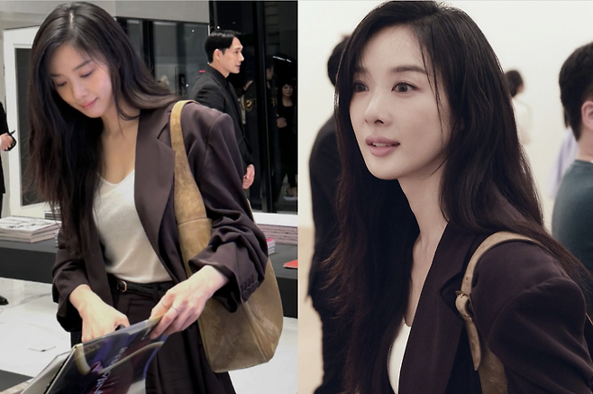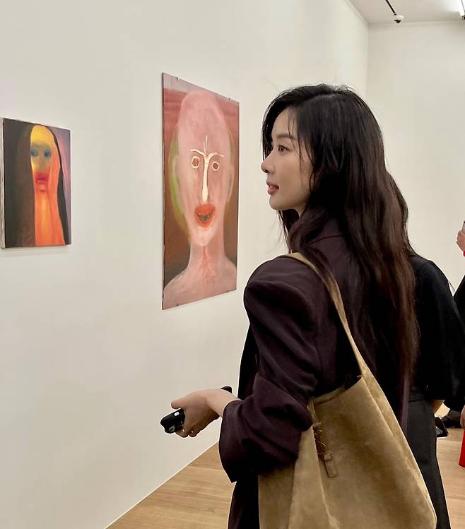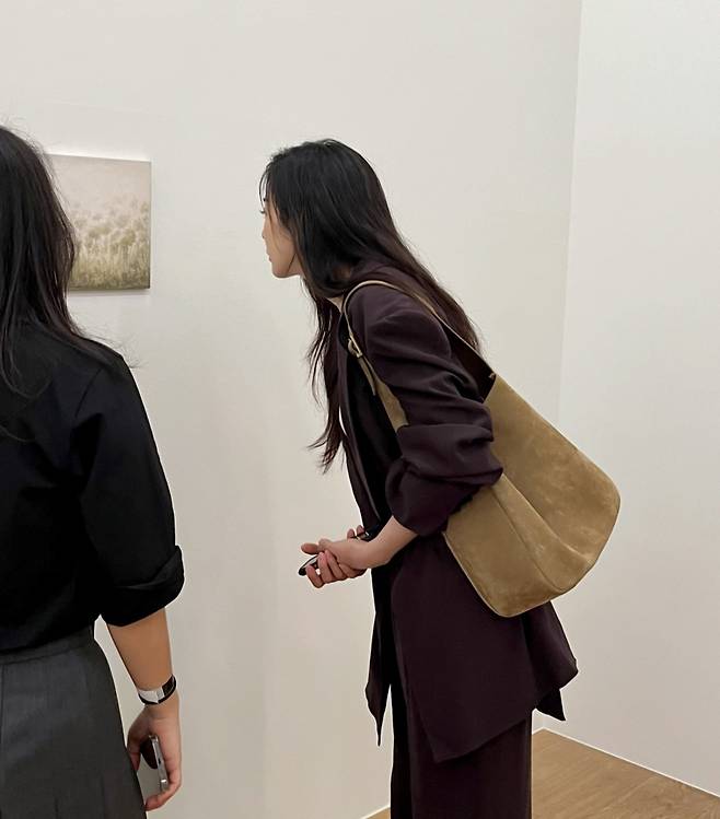 사진 속 이청아는 브라운 정장셋업을 입은 채 전시회를 즐기고 있는 모습입니다.