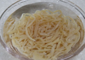 - 해파리는 흐르는 물에 헹궈 물기를 제거한 뒤, 먹기 좋게 면처럼 썬다.