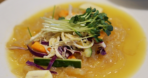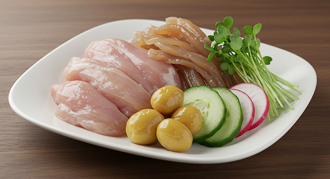 이 요리는 해파리의 쫄깃한 식감과 닭가슴살의 담백함, 채소의 신선함이 어우러져 색다른 한식 메뉴로 손색이 없습니다. 특히, 해파리는 칼로리가 낮아 다이어트에도 좋고, 닭가슴살은 뇌 건강에 꼭 필요한 필수 아미노산을 제공합니다. 겨자 소스는 입맛을 돋우며, 뇌 활동에 활력을 불어넣는 역할을 합니다.