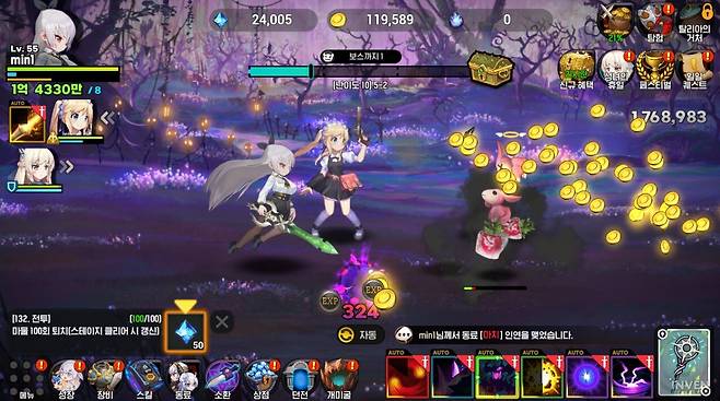 대부분의 방치형 게임과 달리 수동 조작을 지원하는 점도 눈에 띈다. "물론 컨트롤 없이도 스테이지 클리어는 가능하지만, 보스가 강력한 범위 공격(장판)을 사용할 때 수동 조작으로 피하거나, 특정 패턴에 맞춰 위치를 바꿔 더 높은 점수를 노리는 등 유저의 개입으로 더 많은 보상을 얻을 수 있는 구조"라며 "이는 비슷한 전투력의 유저 간 경쟁에 미묘한 차이를 만들어내는 확실한 재미 요소가 될 것"이라고 자신했다.