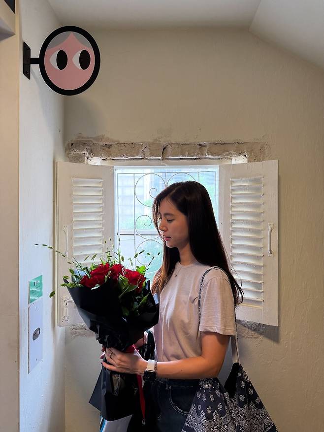 한채아가 창가에 서서 붉은 장미 꽃다발을 바라보는 사진이 눈길을 끈다. 내추럴한 채광 속에서 담백한 티셔츠와 진청 데님을 매치해 꾸민 듯 안 꾸민 듯한 무드를 자아낸다. 이번 스타일은 그녀의 일상 속 여유를 그대로 드러내며, 최근 SNS에 올린 홍콩 여행 인증샷과도 맞닿아 있다.