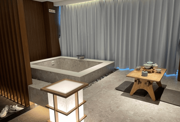 자쿠지는 '패밀리 풀 스파 스위트' 객실에만 마련되어 있어 사전 예약이 필요합니다. 자쿠지 외에도 다도 공간이 있어 차를 마시며 휴식을 즐길 수 있습니다. 멀리 떠나지 않고도 도심에서 힐링과 전통적인 감성을 느낄 수 있는 것이 큰 매력입니다.