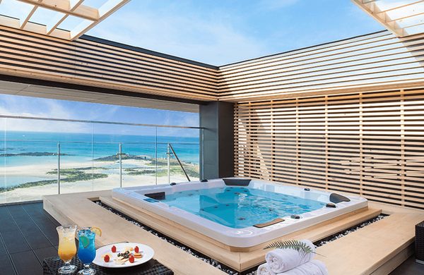 제주의 함덕 해변에 위치한 유탑유블레스 호텔은 에메랄드빛 바다와 어우러진 자쿠지 경험을 선사합니다. 이곳은 해변을 바라보며 겨울 바람을 맞아도 따뜻한 스파를 즐길 수 있는 최적의 장소로 꼽힙니다.