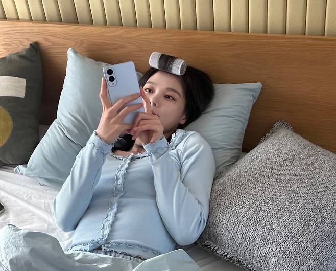 부드러운 라운드 넥 라인의 니트는 편안하면서도 단정한 인상을 주며, 자연스럽게 묶어 올린 번 헤어스타일은 목선을 시원하게 드러내어 사랑스러운 '공주님' 비주얼을 완성했어요.
