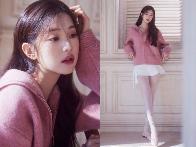 장원영은 17일 자신의 인스타그램에 발레리나 콘셉트의 화보를 소화하고 있는 모습을 공개했다. 그는 인형 같은 각선미에 발레 슈즈와 타이즈 패션을 소화했고, 핑크 컬러의 외투로 독보적인 인형 미모로 감탄을 불러일으켰다.