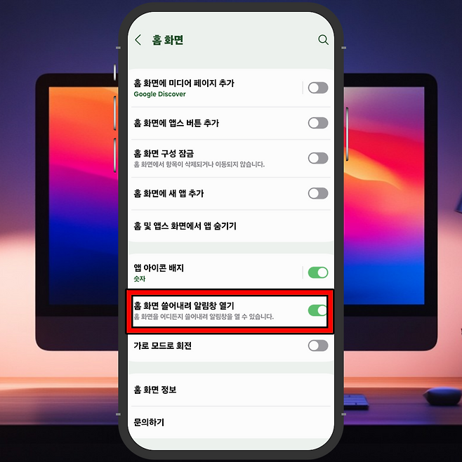 '홈 화면 스와이프하여 알림 패널 열기' 옵션을 켭니다.