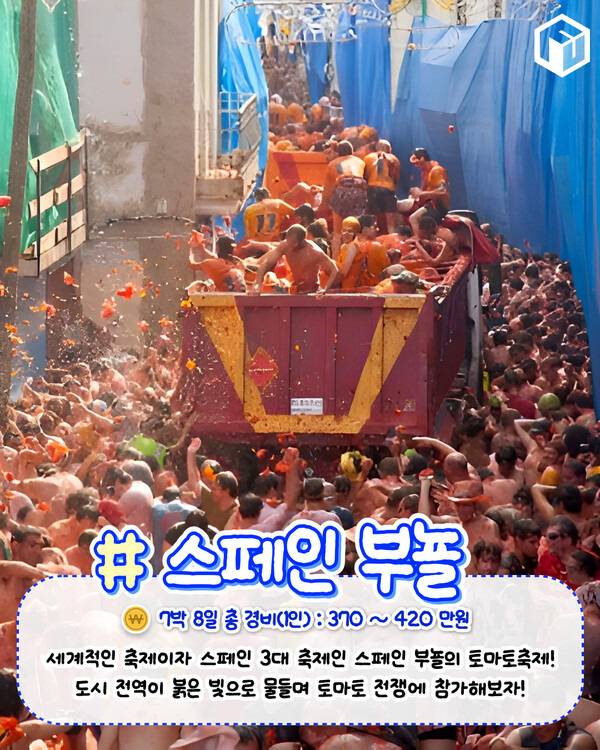 2023년 축제에서는 무려 120톤의 토마토가 사용될만큼 온 도시가 축제 분위기로 들썩거린다니 8월 해외여행지로 추천드리는 스페인 부뇰입니다.