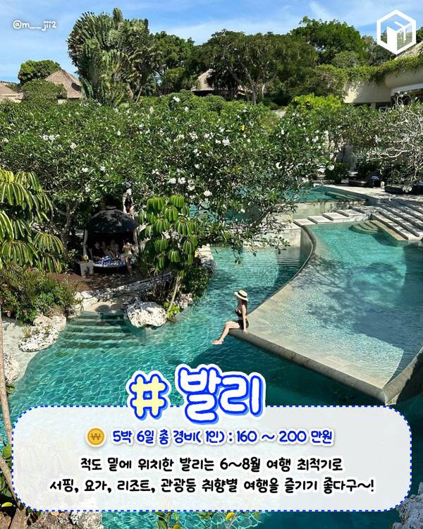 발리는 26~32도의 날씨에 스콜성 소나기가 더위를 식혀 8월 추천드리는 해외여행지입니다. 세계 최고의 휴양지 중 한 곳이라는 휴양뿐만아니라 관광, 각종 해양엑티비티등 취향별 여행을 즐기기 좋은데요.