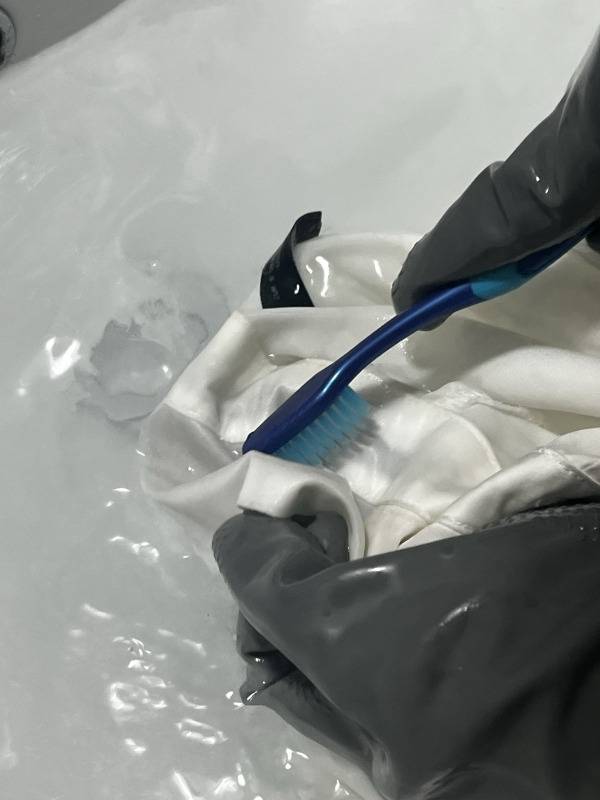 3. 얼룩진 옷을 담가 칫솔로 부분만 세탁하기
