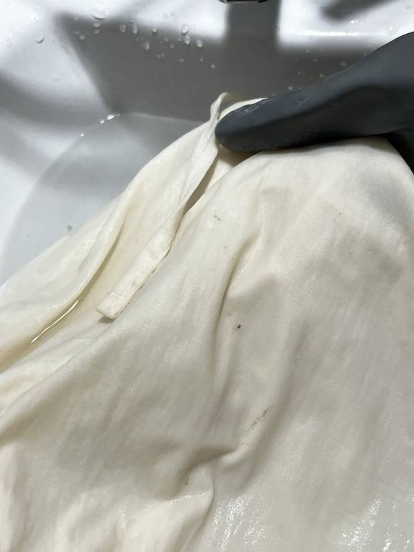 실크 소재의 옷이라 5분 정도 담갔다. 그러자 노란 때가 많이 사라진 것을 확인할 수 있었다.