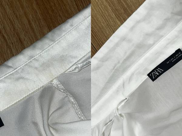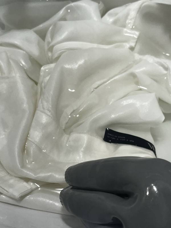 실크 소재의 옷이라 5분 정도 담갔다. 그러자 노란 때가 많이 사라진 것을 확인할 수 있었다.