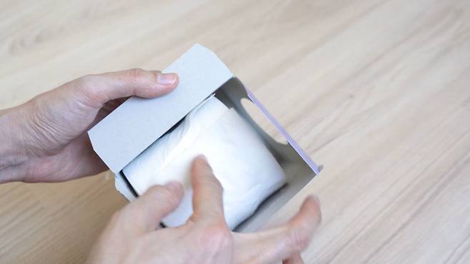 이때 다 쓴 갑 티슈 커버를 버리지 말고 다시 휴지를 넣어 사용해 보세요. 한쪽면을 열고 휴지를 넣고 클립이나 테이프 등으로 고정시켜 놓으세요.