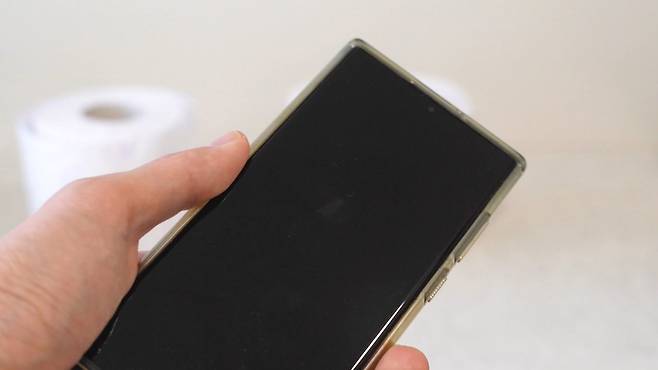 그리고 손으로 여러 번 휴지를 눌러 줍니다. 그러면 안에 있는 휴지심이 말랑말랑 해지면서 빼기 쉬운 상태가 되는데요.